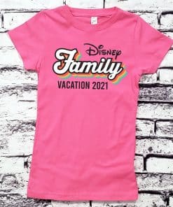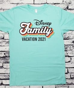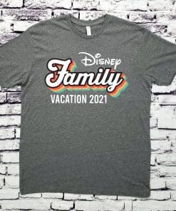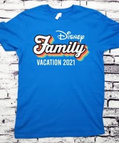 This item can be personalized to include your family or group name (shown as Disney). Use the “Custom Name/Text” box above to personalize your shirts. The text below the design (Vacation 2021) can also be personalzie